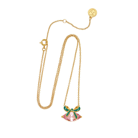 Amelia Bow Necklace, Emerald Green, Blush Pink & Gold