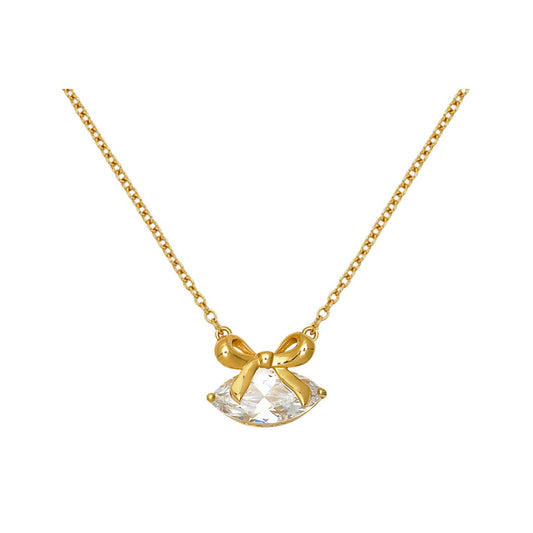 Amelia Bow Necklace Clear Cubic Zirconia & Gold