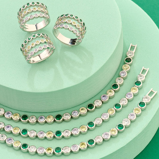 Celeste Cluster Bracelet Blush Pink, Emerald Green & SilverRegular price £159.00Regular priceUnit price / per-