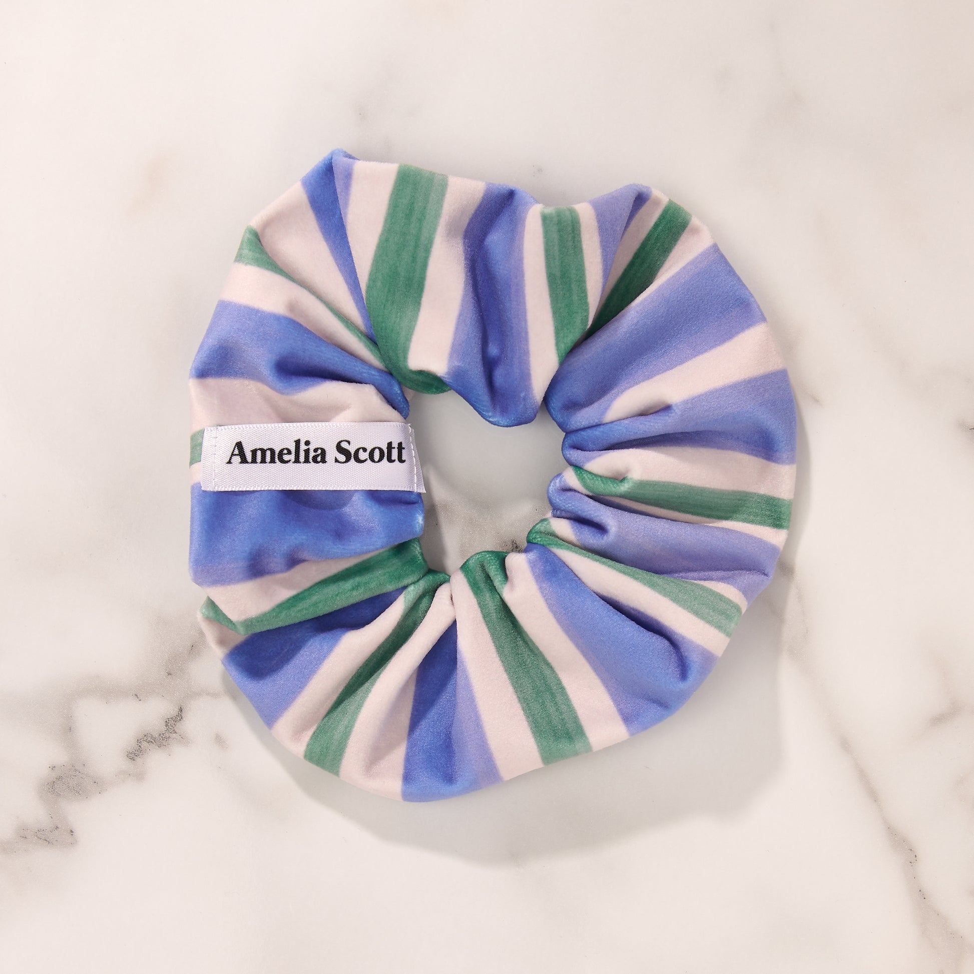 Lucy Cornflower & Sage Stripe Velvet Scrunchie