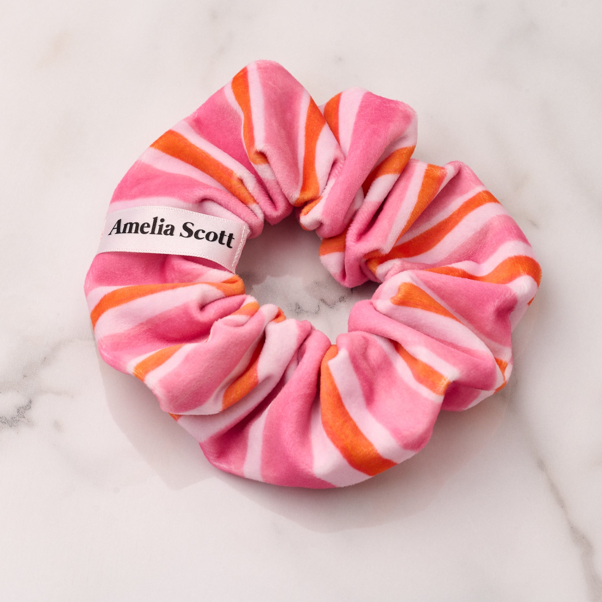 Lucy Pink & Orange Stripe Velvet Scrunchie